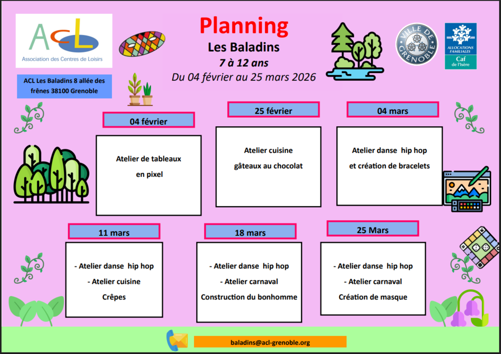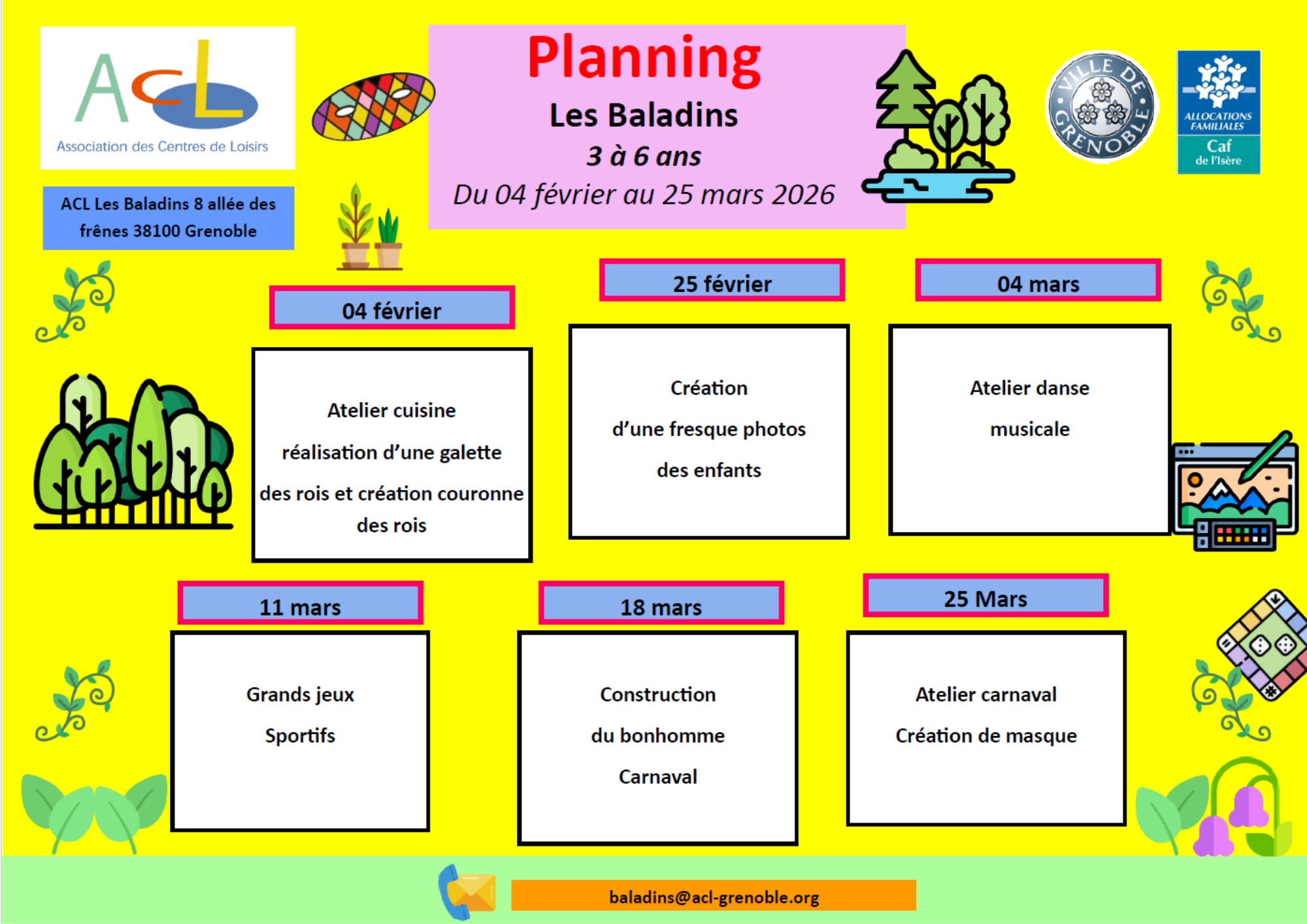 Pour ce centre, inscrivez-vous exclusivement auprès du secrétariat des Baladins, 8 allée des Frênes