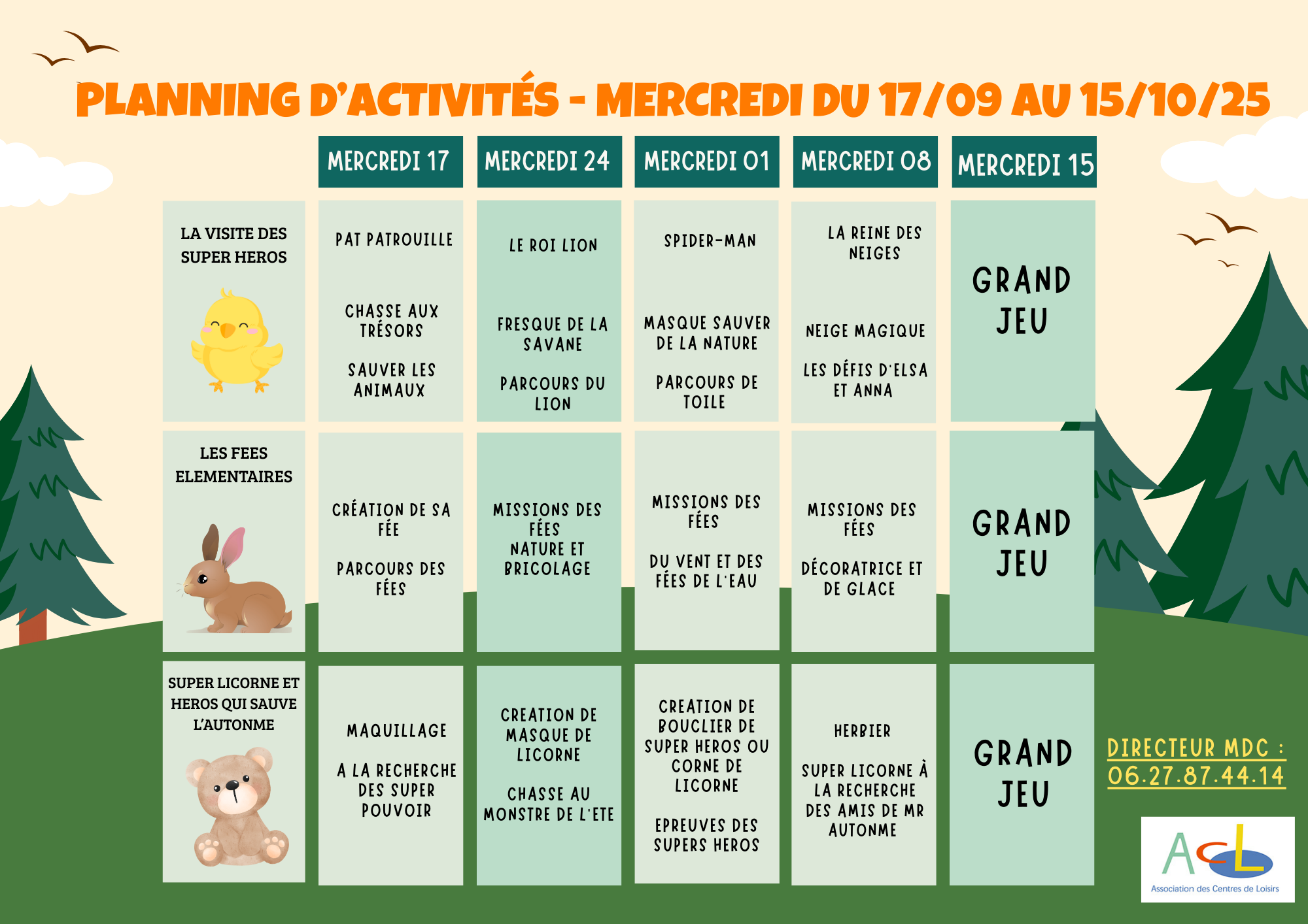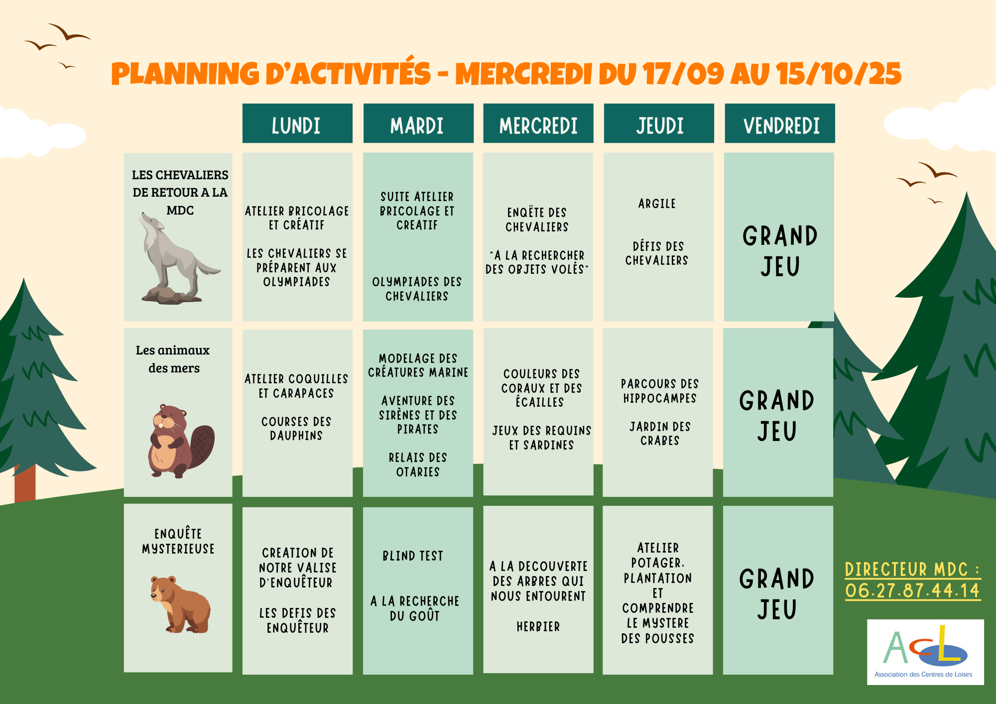 Plannings d’activités :