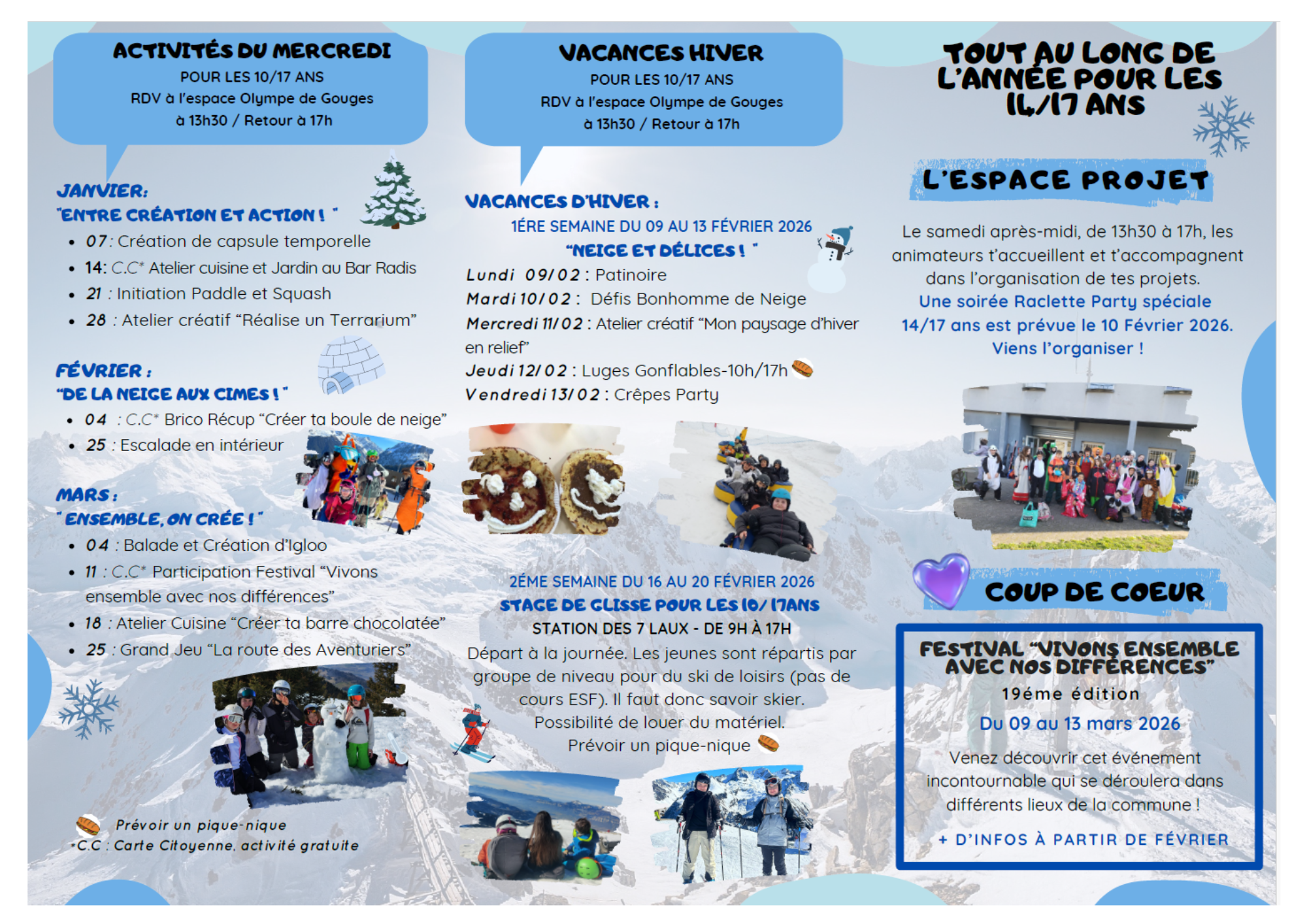 Au programme : sortie patinoire, défis bonhomme de neige, atelier créatif, sorties luges gonflables et crèpes party.